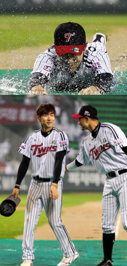 시구하러갔다가 우천취소되서 우천세레머니만 하고 돌아온 준수아빠ㅋㅋㅋㅋㅋㅋㅋ