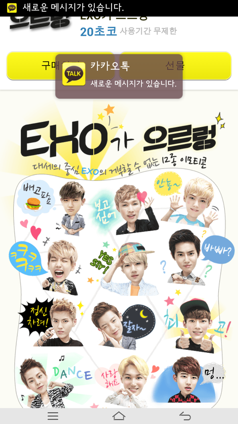 엑소가 대세긴 한갑다(카톡)