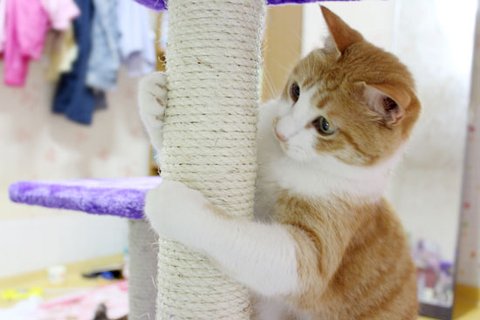 새로 산 캣타워에 장난감이 달려있는데 냥이들이 손을 넣으면서 안에있는 공을 빼는 그런 식의