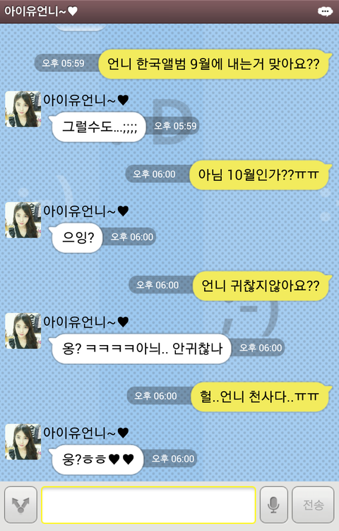 오옷!!나 아이유랑 카톡햇어ㅠㅠ