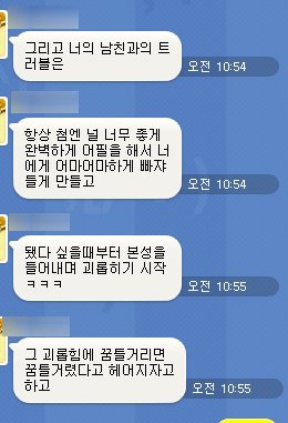 거기서 부터 시작된 싸움이 어마어마하게 커졌습니다.저에게 ㅁㅊ년, ㅅㅂ년, ㄱㄱ튼년 이라고 욕까지 하덥디다.어떻게 그런욕을 하냐고 하니, 제가 그렇게 만들었다고 했어요.모든게 가식이었다며, 사랑한다고 한것도 거짓말이라고.어떻게 사랑한다고 한지 10분도 지나지 않아, 자기의 실수로 헤어지잔 말을 하냐고그러더라구요.그래서 저땜에 자기가 미쳐가고있대요.
