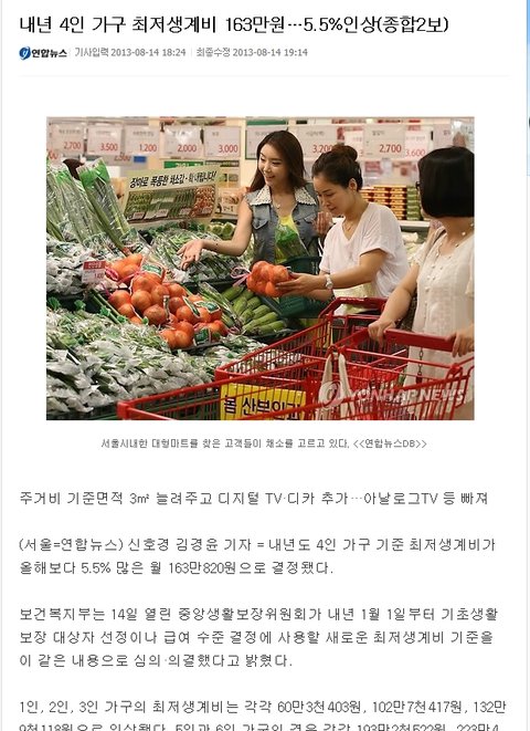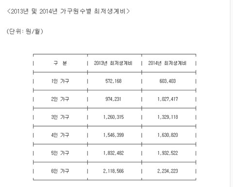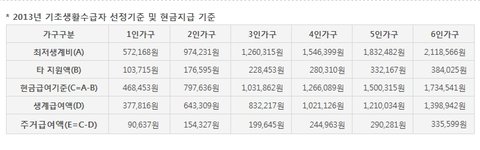 5인 가구 2013년 1,832,482원 내년 1,932,522원