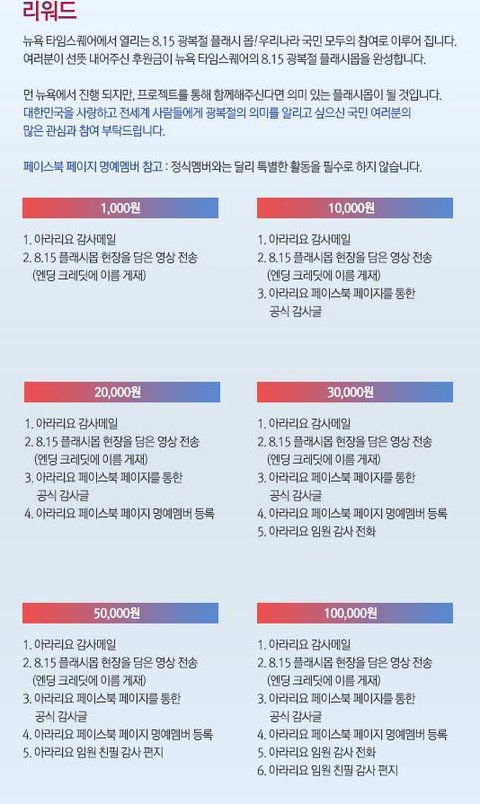 지금 꼭 크라우드펀딩 링크(http://www.ucanfunding.com/project/view.php?num=612)로 가주셔서 ‘아라리요’가 광복절 플래쉬몹을 타임스퀘어에서 멋지게 펼칠 수 있도록 도와주세요!