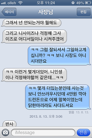 진짜 별에별 알바 해봤는데 이딴넘은 첨이다 부모욕부터 시작해서 건방지다고 ㅋㅋㅋ