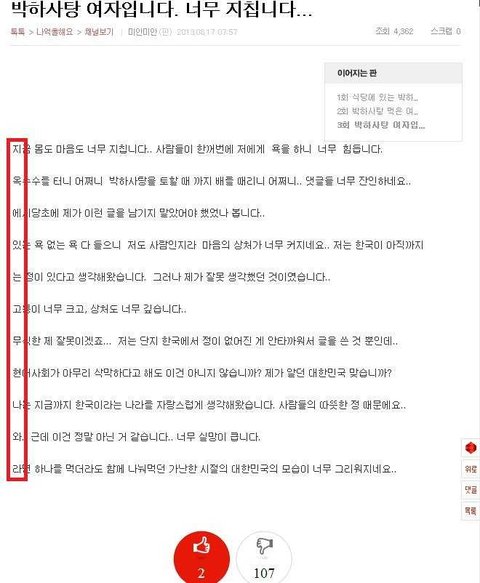 ps. 자작이라는 분들. 남의 상처가지고 함부로 말하지 마세요.