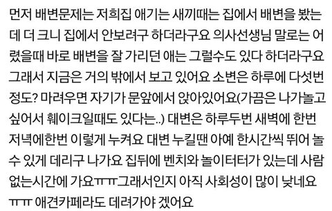 집안에서는 대소변을 안봐서 하루에 몇번씩 밖에서 본다는 톡이있더라구요ㅠㅠ