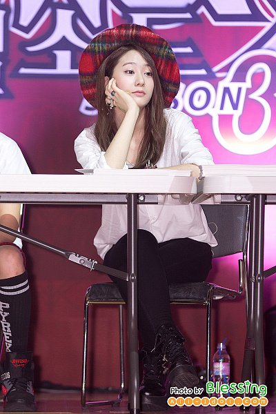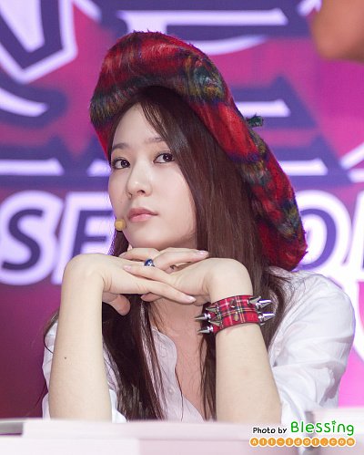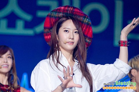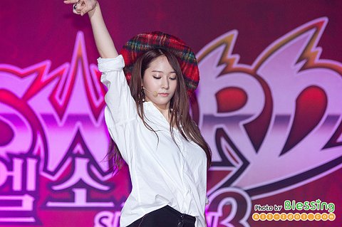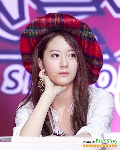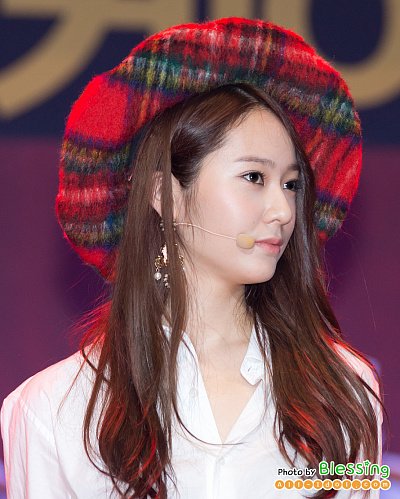 뮤비에서 봤던 특이한 모자를 쓰고 무대에 섰던 최근 크리스탈
