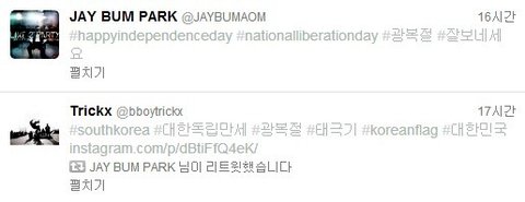 광복절이었던 어제는 직접 이런 트윗까지~