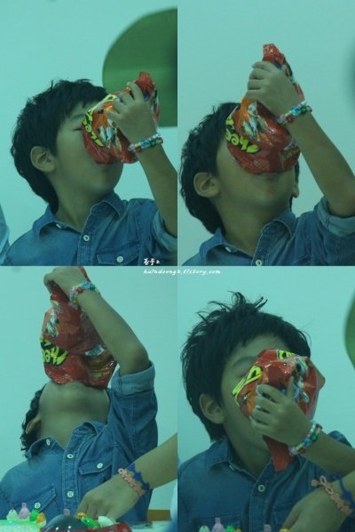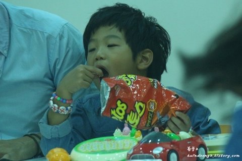 아빠가 사인에 정신 없는 틈을 타 과자 진짜 야무지게 먹고 간 준수ㅋㅋㅋㅋㅋㅋ