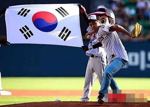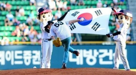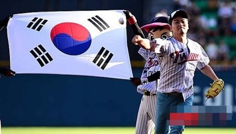 태극기 목에 두르고 다부지게 소감을 전한 뒤 그라운드로 발을 옮김ㅋㅋㅋ