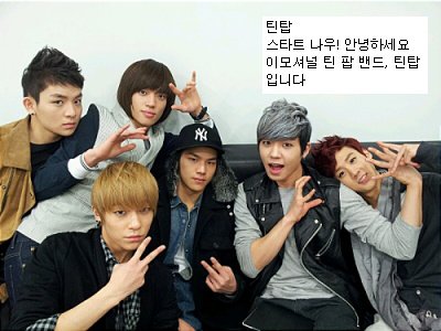 안녕하세요! 우리는 혜성처럼 전진하는 신화입니다! 안녕하세요! 영어랩과 이국적인 카리스마를 맡고 있는 에릭입니다! 안녕하세요! 보컬과 안무를 맡고 있는 쿨가이 이민우입니다! 안녕하세요! 랩과 서브보컬을 맡고 있는 위트가이 김동완입니다! 안녕하세요! 메인보컬과 어린 왕자 이미지를 맡고 있는 신혜성입니다! 안녕하세요! 랩을 맡고 있는 SF 만화이미지 전진입니다! 안녕하세요! 영어랩을 맡고 있는 샤이가이 앤디입니다! 우리는~ 신화입니다!!!