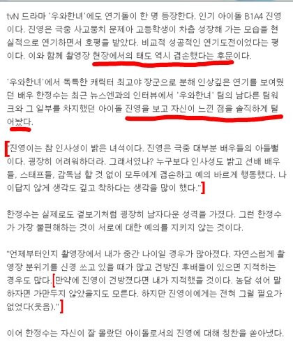 진영이랑 우와한녀 같이 찍은 배우 한정수님 인터뷰 내용