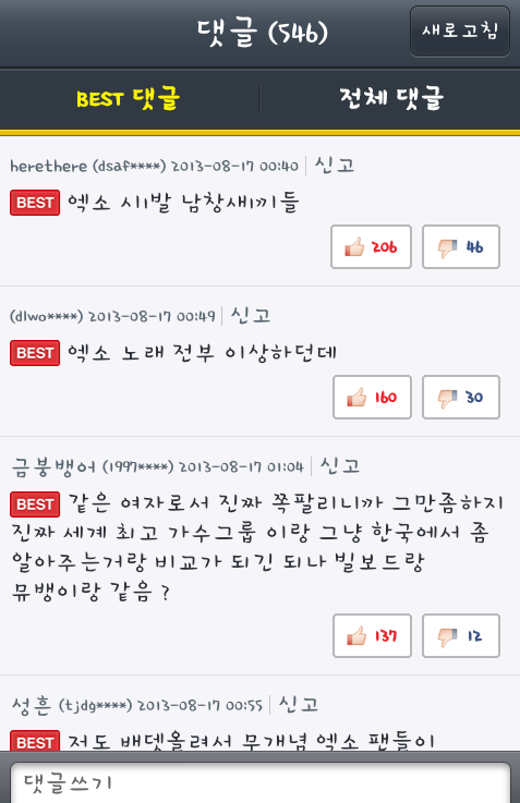 네×버 웹툰 중에 만화로 듣는 올댓록인가? 해튼 거기서 엑소 무개념팬이 비틀즈 까고 엑소가 더 좋다고 해서 욕먹음