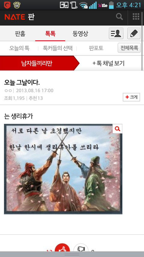 아니 애초에 여성이면누구나하는 생리에 휴가를준다는 발상자체가 미친거아닙니까?꼴페미보.슬도 아니고 발상하는것도 모자라 전세계 유일 생리휴가제도를 도입했고ㅋㅋㅋㅋㅋ아니 생리힘든거 잘압니다 해보진못했지만 아프고힘들어하는여성 분들 많이봤구요 조심하고챙겨드리고 그랬어요 근데 악용하는게문제죠 쉬고싶고 놀고싶을때 혹은 월요일이나 금요일에 생리핑계대며 생리휴가로 쉬고 정작 생리하며 힘들땐 참으며 일하는 여직원들 엄청많이봤네요 남자라면 의무적으로누구나가는 군대엔 혜택주는건 차별이고 위헌이라면서 여자라면 누구나하는 생리엔 혜택을주네요ㅋㅋㅋㅋㅋㅋㅋㅋ이러니 여잘 더안뽑으려하지 생리휴가에 육아휴가에 출산휴가에 신체적힘도약해서 무거운건남자가들고 커피좀타오라시키면 기분나빠하고 성추행 성희롱오해살까봐 불편한것도있고 말도 조심해서 해야하고ㅋㅋㅋㅋ허구한날 sns나 하고있고 남직원들보다 아부도못떨고 온갖 혜택받고 우대받길원하고 자신이 사회적약자라고 생각하면서 월급은똑같이받길원하고 남자만많이뽑는건 차별이라하고ㅋㅋㅋㅋㅋ왜그런건지 생각은깊게안해봤나?그리고 여성CEO들도 인터뷰한거보면 남직원을더선호한다그래요 자신이 여성이니 여성들의 야비함을 교묘하게잘알고있는거죠ㅋㅋㅋㅋㅋㅋ남자들은 힘들게 야근하며 힘들게일하는데 여직원들은 뭔 생리휴가가 있으니 그냥 하루쉴수있고ㅋㅋㅋㅋ아효 정말 짜증나네요 기본적인 책임과 의무는지기싫고 권리와 자유만중요한 이중적이고 이기적인년들이 뭐이리 많은지뭔ㅋㅋㅋㅋ무개념 여성비하하는온갖단어와 여성혐오하는사람들이 점점늘어나는게 이해가되네요 그리고 진짜 아프고힘들어 죽을것 같지않은이상 생리휴가쓰지마세요 솔직히 안좋게보이는건 사실이고 우리들도힘들고 쉬고싶고 칼퇴근하고싶어요 근데 여자만 생리휴가랍시고 하루휴가받는거 진짜 죡같거든요ㅋㅋㅋㅋㅋㅋㅋ자주쓰면왕따당하니 악용좀하지마세요 진짜 욕나오니깐;