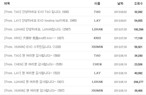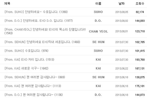 아래는 엑소 공홈 프롬 스타