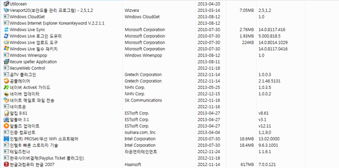 윈도우7 [프로그램 제거] 에서 지워야할 프로그램좀 알려주세요