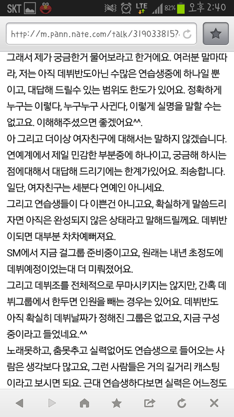 이거아님ㅋㅋㅋㅋ무ㅜ개솔이야 스엠지금 걸그룹라인업아예없고 구성은엑소같고 분위기는 에프엑스삘나는 보이그룹준비중임ㅋㅋㅋㅋ연생도거의남자애들만뽑고