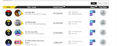 그리고 가온차트는 투매미랑 별로차이안나는데