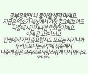이거 깊게 새기고 고삼 뿐만 아니라 중고생 여러분 정신차리자요 인생은 우리가 만듭니다 공부열심히해서 자랑스러운 팬이되요 우리 ! 고삼 수능 수시 대박!