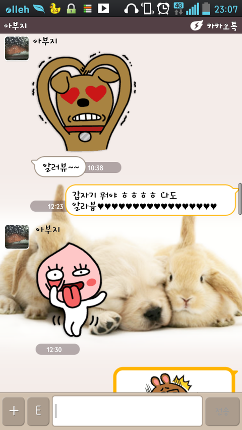 울 아빤 지금 중국에 계시는데 오늘 카톡이와서 봤더닝