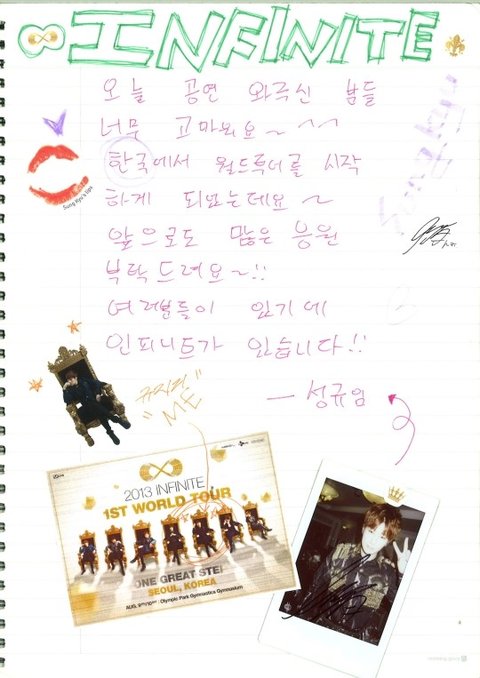 성규가 적어준 인피니트 월드콘서트 One Great Step 서울 후기-