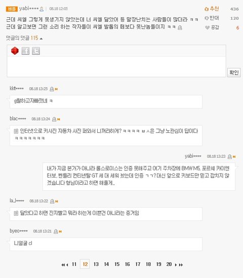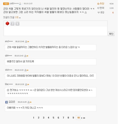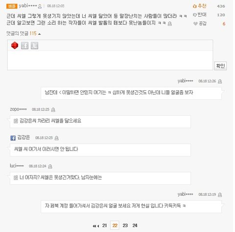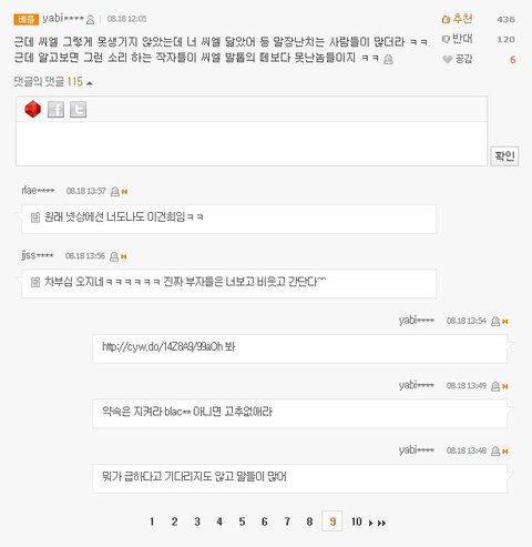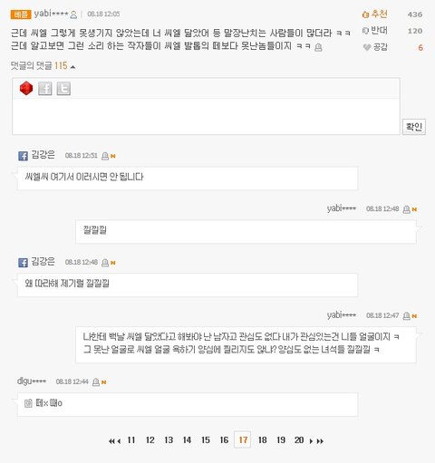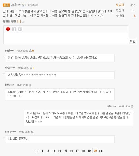 3. '니 얼굴 씨엘' 부터 시작해서 댓댓글에 욕이 난무해짐.