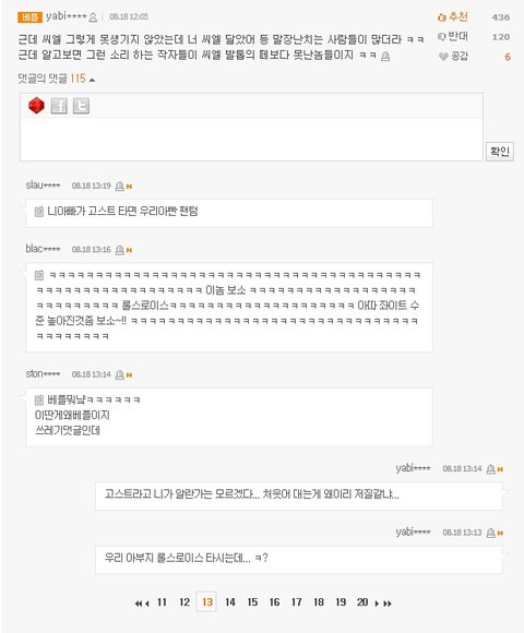 4. 사람들이 베플러에게 여자, 오크년에 이어 부모 도발까지 이어짐.