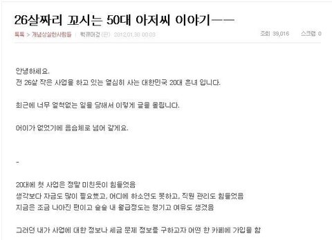 26살짜리꼬시는 50대 아저씨이야기 ㅡㅡ