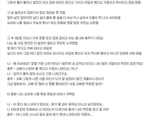 진짜더럽다 나이처먹어서 어린여자좀꼬셔볼라고 더러워진짜 꼭저런새.끼들이 지랑나이같은여자안찾고 꼭어린여자찾더라 존.나더러워 나도저런적잇긴잇다 알바하다가아저씨가들이대는데 개더러웠음ㅡㅡ 저딴짓안했음좋겠다 우웩