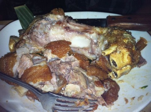 이건 돼지다리 인데요 껍질은 바삭하면서도 안은 부드러운..