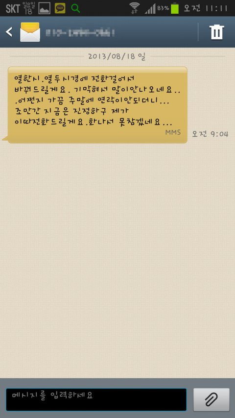 그렇게 토요일에 카톡을 하다 잠이 들었고, 일요일 오전 10시쯤에 눈이 떠져서 언제나처럼 핸드폰을 제일 먼저 확인했는데 모르는 번호와 그 사람의 번호로 문자가 와 있더라구요.