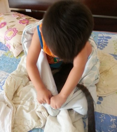 더러워서 세탁기에 넣은 순간 이불 없어졌다고 울고불고 난리가 남
