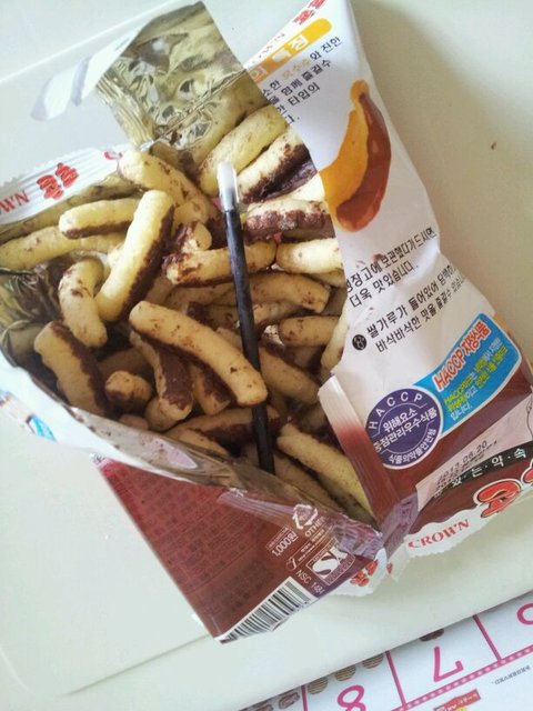 아이들간식으로 사준 크라운제과콘초코인데 10cm이상 크기의 색연필이나왔네요