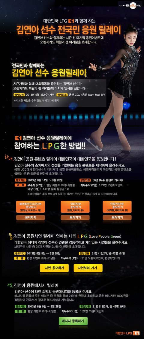 E1에서 김연아 선수 응원 공모전을 한다고 합니다
