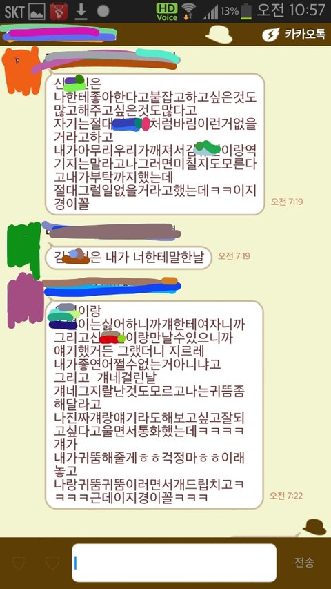 속좋은 L양은 자신의 남자친구를 뺏어갔음에도 불구하고 김xx를 불쌍히 여겼고 장난식으로 나쁜년 미친년이러면서 용서해주었습니다. 따라서 김xx와 L양은 다시 잘 지내게 되었습니다. 물론 저희들 입장에선 우리 앞에서 2번이나 바람난 김xx를 받아들이지 못했지만, 이내 L양을 봐서라도 용서해주어야 겠다고 생각해서 잘 지내보기로 했습니다.