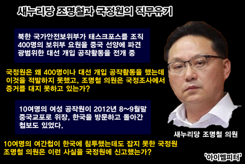 대선을 한 달 앞둔 2012년 11월, 조명철 의원은 국회에서 '북한 보위부 요원 400여명이 남한 대선에 개입하고 있다'는 기자회견까지 열었습니다. 그렇다면 국정원과 조명철 의원은 그 400여명의 북한 공작 활동에 대한 증거를 하나라도 제시했어야 합니다. 그러나 아무것도 없습니다.