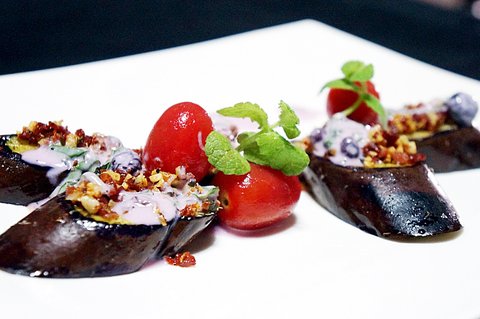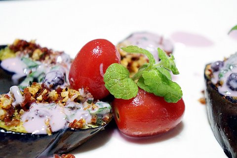 요리 이름: 구운 가지와 마늘 베이컨, 블루베리 요거트