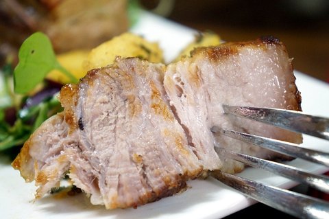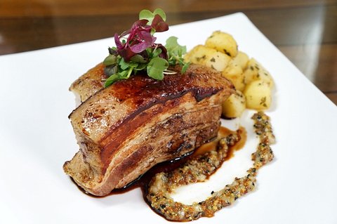 타임과 카레가루를 발라 바삭하게 구운 목살을