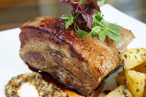 요리 이름: 통삼겹살 구이와 흑임자 머스터드