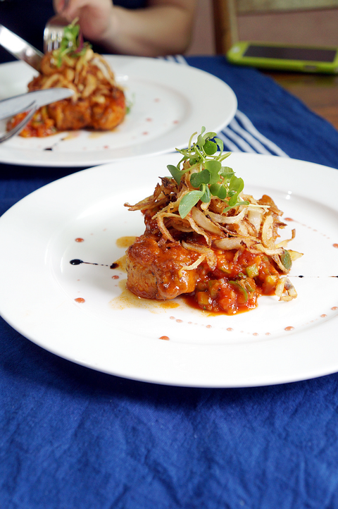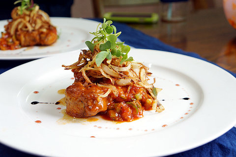 가니쉬로는 바삭하게 튀긴 양파튀김을 올려서 마무리 해봤어요.