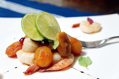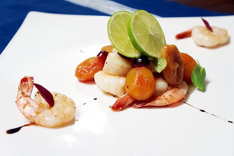 요리 이름: 미도리향의 살구 콤포트와 새우 관자구이