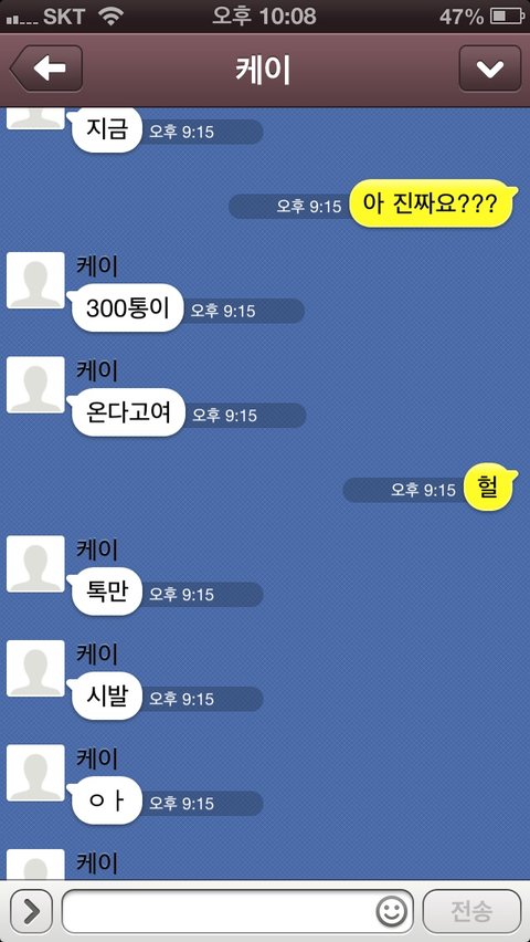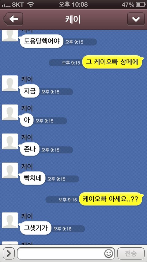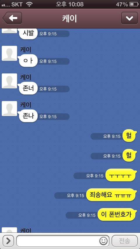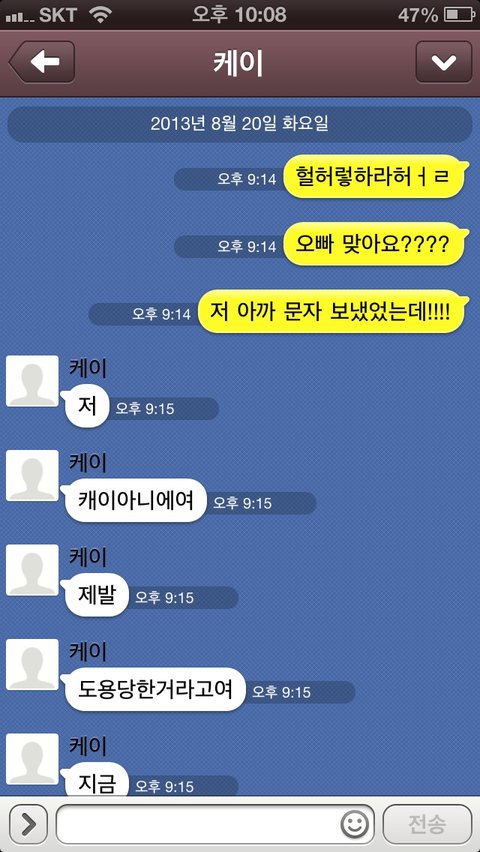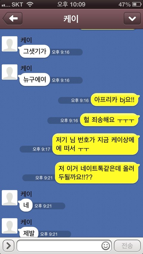 그 케이오빠 방송하시면서 미녀찾기할때 쓰시는 번호 상메에 케이오빠번호라고 써있어서 와 케이오빠다 이러면서 문자보내고 톡도해봤어요!!!