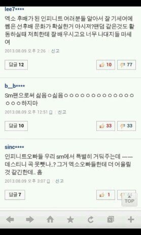 이건 제가 엑소 판에 인피니트 좀 그만까달라고 부탁하는 글 올리니까 달린 댓글