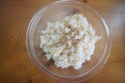 1.찬밥을 두공기를 소금 (볶은소금) 조금,깨소금1t,참기름1t. 양념하여 준비 합니다.
