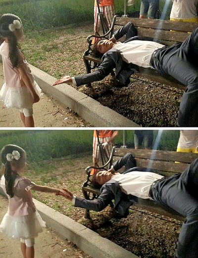 유딩이라도 스커트 때문에 노출 안 되게 하려고 치마 원천 봉쇄한 아빠.jpg 사진으로 마무맄ㅋㅋ