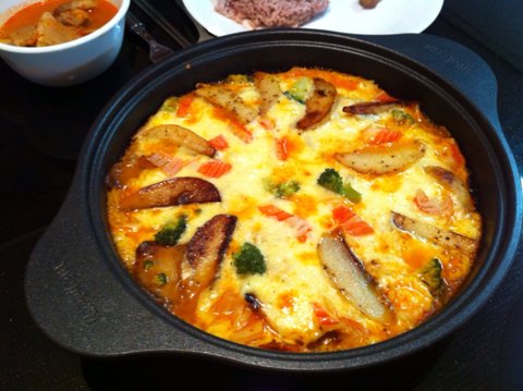 감자 슬라이스해서 밑에 깔고 퍼먹퍼먹 했뜸 ㅋㅋ(갠적으론 감자보다 고구마였음 더 맛있었을 듯..)