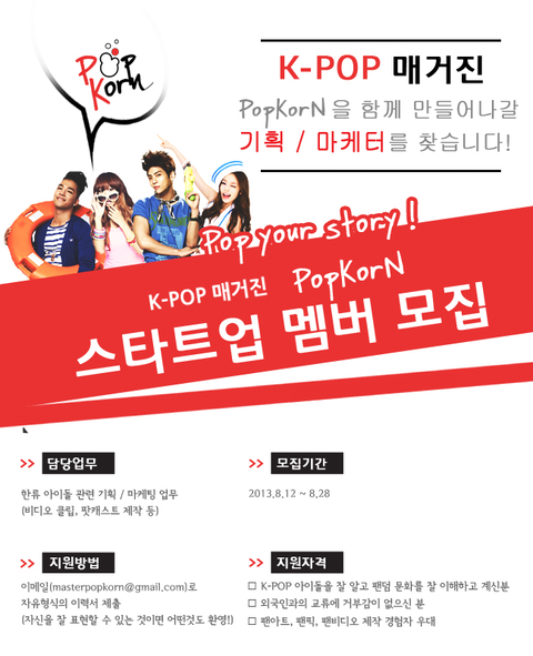 한류 웹진 PopKorN 스타트업 멤버 모집!
