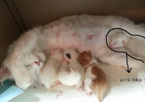 드디어 저희 쿠크가 새끼를 낳았습니다.
