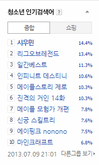 청소년, 대학생, 싱글녀 검색어에 매일매일