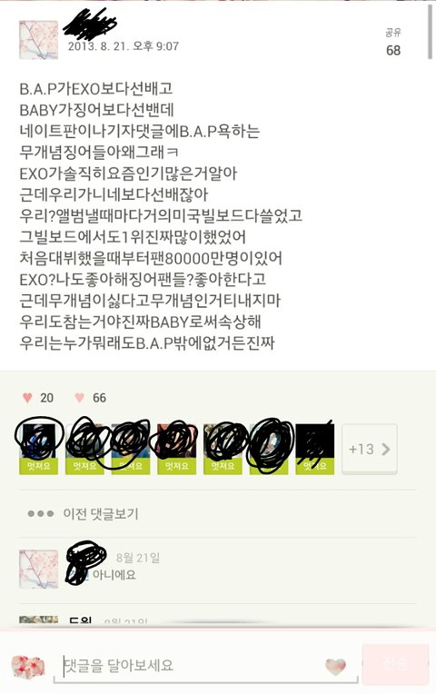 솔직히 말해서 개념없는 엑소팬들이 설치고 다니는거 알지만 베이비가무개념이없는것도 아니고 이런 공개적인데다가 올리면 좀 그렇네